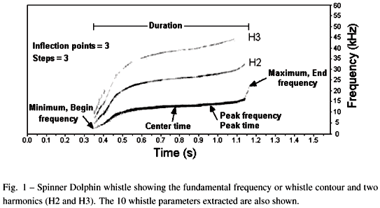 Une conception ancienne des signatures sifflées les définissait comme « le son le plus courant émis lorsqu’un dauphin était isolé ». Cette description se limitait aux résultats obtenus sur des dauphins en captivité et en grande détresse.